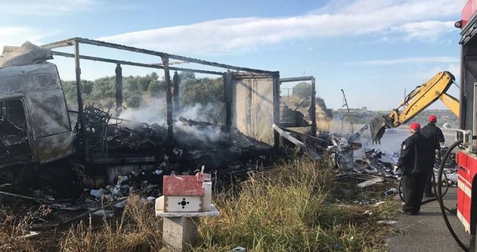 Po tym jak samochód typu van nie zatrzymał się do kontroli, policja rozpoczęła za nim pościg. Kierowca vana gwałtownie zwiększył prędkość, stracił kontrolę nad pojazdem i samochód zjechał na przeciwny pas ruchu, gdzie czołowo zderzył się z ciężarówką. Oba samochody natychmiast stanęły w płomieniach. Jak się później okazało, w vanie znajdowało się jedenastu, prawdopodobnie, nielegalnych imigrantów. Wszyscy zginęli na miejscu. Do ustalenia ich tożsamości konieczne będzie przeprowadzenie badań DNA. Kierowcy ciężarówki udało się samodzielnie opuścić pojazd, odniósł jedynie niewielkie obrażenia.