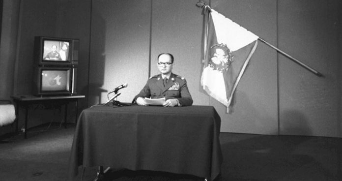 W niedzielę 13 grudnia 1981 r. o godz. 6 rano Polskie Radio nadało wystąpienie gen. Wojciecha Jaruzelskiego, w którym informował on Polaków o ukonstytuowaniu się Wojskowej Rady Ocalenia Narodowego (WRON) i wprowadzeniu na mocy dekretu Rady Państwa stanu wojennego na terenie całego kraju.