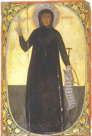 Święta Filotea była zakonnicą prowadzącą znaczącą działalność charytatywną i społeczną podczas okupacji tureckiej w XVI wieku. Kościół prawosławny ogłosił ją świętą i jest ona ściśle związana z Atenami. Dzień poświęcony jej pamięci w Kościele Prawosławnym przypada na 19 lutego. Mówić o Świętej warto poddać rozważaniom przyjęte przez nią imię. Filotea to imię żeńskie i ma pochodzenie greckie. Etymologia tego imienia wskazuje, że można je tłumaczyć jako: „Przyjaciółka Boga” lub też „miłująca Boga”. Męskim odpowiednikiem tego imienia jest Filoteusz. Jak wskazuje literatura imię to było bardzo popularne wśród duchowieństwa oraz mnichów w wieku XVI.