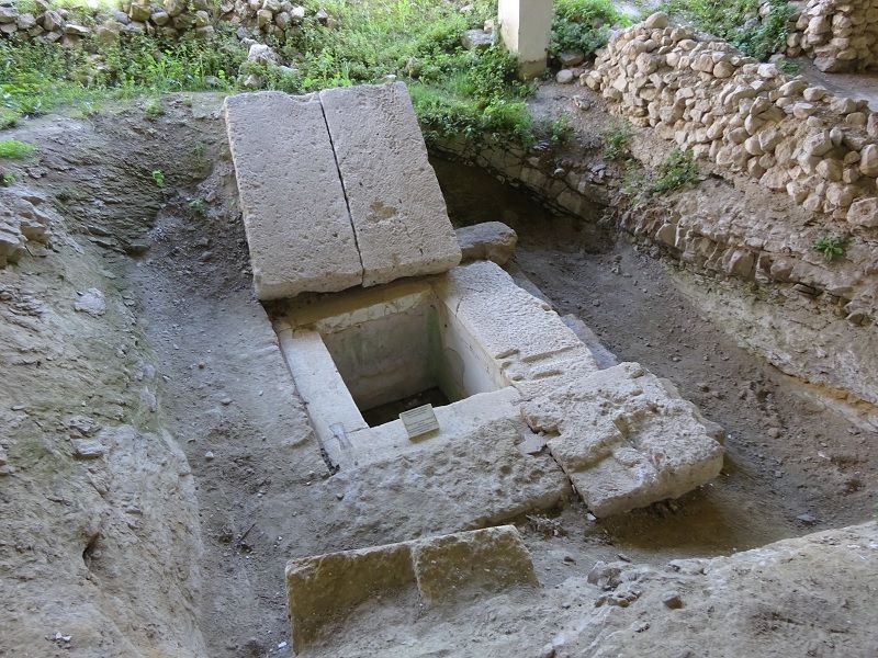 Grób ten składał się z czterech następujących po sobie pomieszczeń sklepionych kolebkowo. W pierwszym znajdowały się schody wiodące w dół do ściany działowej z wejściem strzeżonym przez dwa kamienne sfinksy. Za drugim pomieszczeniem znajdowała się ściana otworem drzwiowym flankowanym dwoma kariatydami – posągami kobiet spełniającymi funkcję kolumn (najsłynniejsze znajdują się w Erechtejonie na Akropolu w Atenach). Dalej archeolodzy odkryli posadzkę mozaikową ze sceną z mitologii przedstawiającą porwanie Persefony do Hadesu. Za nią znajdowało się ostatnie pomieszczenie z zagłębioną w ziemi komorą grobową zawierającą niekompletne szczątki pięciu osób – kobiety ok. 60 roku życia, dwóch mężczyzn między 35, a 40 lat, jedno niemowlę i szczątki kolejnego mężczyzny, prawdopodobnie skremowane. Na podstawie znalezisk wspominających imię Hefajstiona, najlepszego przyjaciela Aleksandra Wielkiego, archeolodzy przypuszczają, że był to grobowiec przeznaczony właśnie dla niego. Po latach badań odkrycie to ma zostać udostępnione turystom pod koniec 2021 roku.