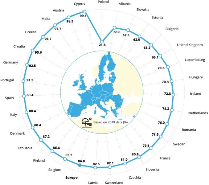 Liderem jest Cypr, z 99,1% plaż o „doskonałej” jakości wody, co oznacza, że tylko jedno ze 113 zgłoszonych na Cyprze miejsc nie uzyskało najwyższej oceny. Grecja jest na czwartym miejscu z 95,7% za Austrią i Maltą.