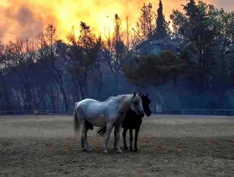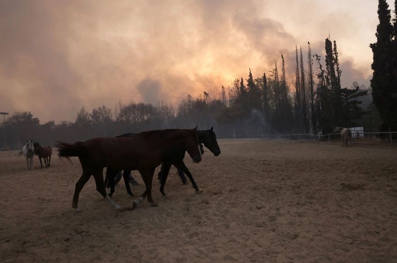 Około 100 koni zostało ewakuowanych z ośrodków jeździeckich w pobliżu miejsca wielkiego pożaru w północnych Atenach. Zostały przewiezione ciężarówkami do bezpiecznego miejsca w Markopoulo we wschodniej Attyce we wtorek po południu.