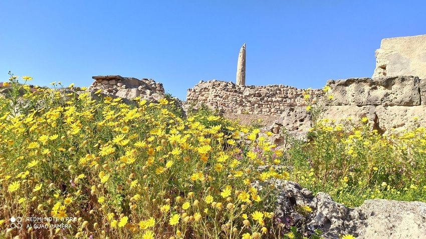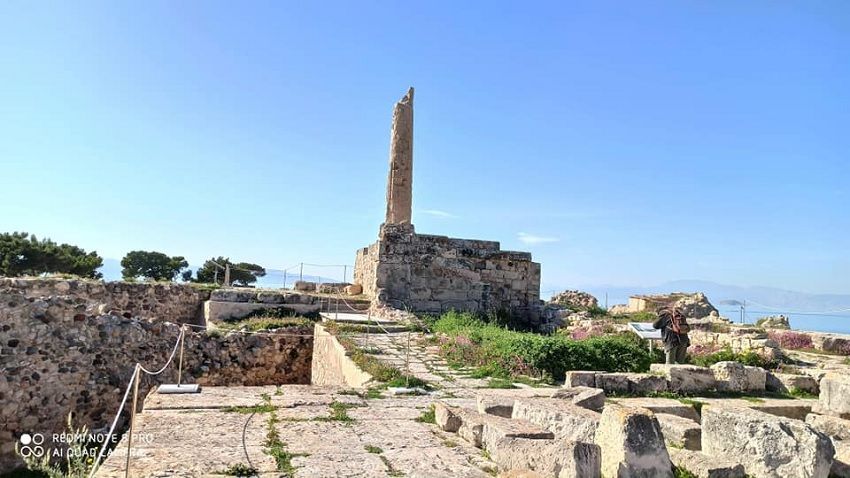 Pokręciliśmy się jeszcze trochę po okolicy i wróciliśmy znów do portu by odwiedzić świątynię Apollo. Za pierwszym razem jak byliśmy nie udało nam się wejść do muzeum i zwiedzić ruin, więc korzystając z okazji zobaczyliśmy i ten zabytek. Same ruiny, a w sumie kolumna nie zrobiły na mnie wrażenia. Za to krajobraz wokół kolumny zdecydowanie mnie zachwycił. Wiosna zbliżała się wielkimi krokami więc całe stanowisko archeologiczne było zatopione w zieleni i otoczone kolorową roślinnością.