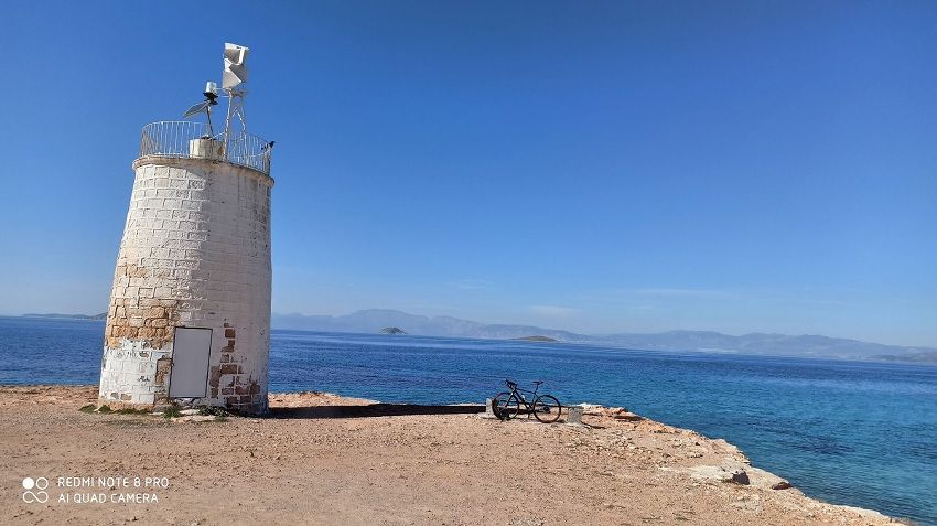 Przyszedł czas by opuścić ruiny i wyruszyć w dalszą drogę. Kolejnym naszym celem była latarnia morska „Bouza”(φάρος Μπουζα). Wróciliśmy do portu i wyruszyliśmy w stronę latarni. Tym razem droga prowadziła wzdłuż wybrzeża. Marcowe słońce grzało przyjemnie a bryza morska dodawała siły. Sama latarnia wydawałby się niczym szczególnym, ale mnie urzekła swoją prostotą. Jeżeli uda się Wam być w okolicy to polecam zostać na zachód słońca.