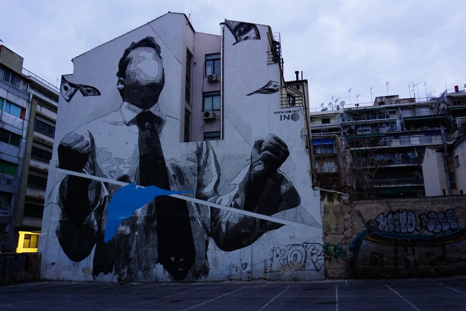 W starej zajezdni tramwajowej (OSY) można podziwiać wspaniałą „Ostatnią wieczerzę w Atenach” („Last supper in Athens”), pełną społecznych wiadomości, będącą jednym z dzieł znanego ateńskiego artysty ulicznego Ino. W pobliżu można napotkać efektowną „Wolność” („Freedom”) oraz starszą współpracę Ino i Aiva o nazwie „Kontrola dostępu” („Access Control”), inspirowaną dystopią science-fiction.