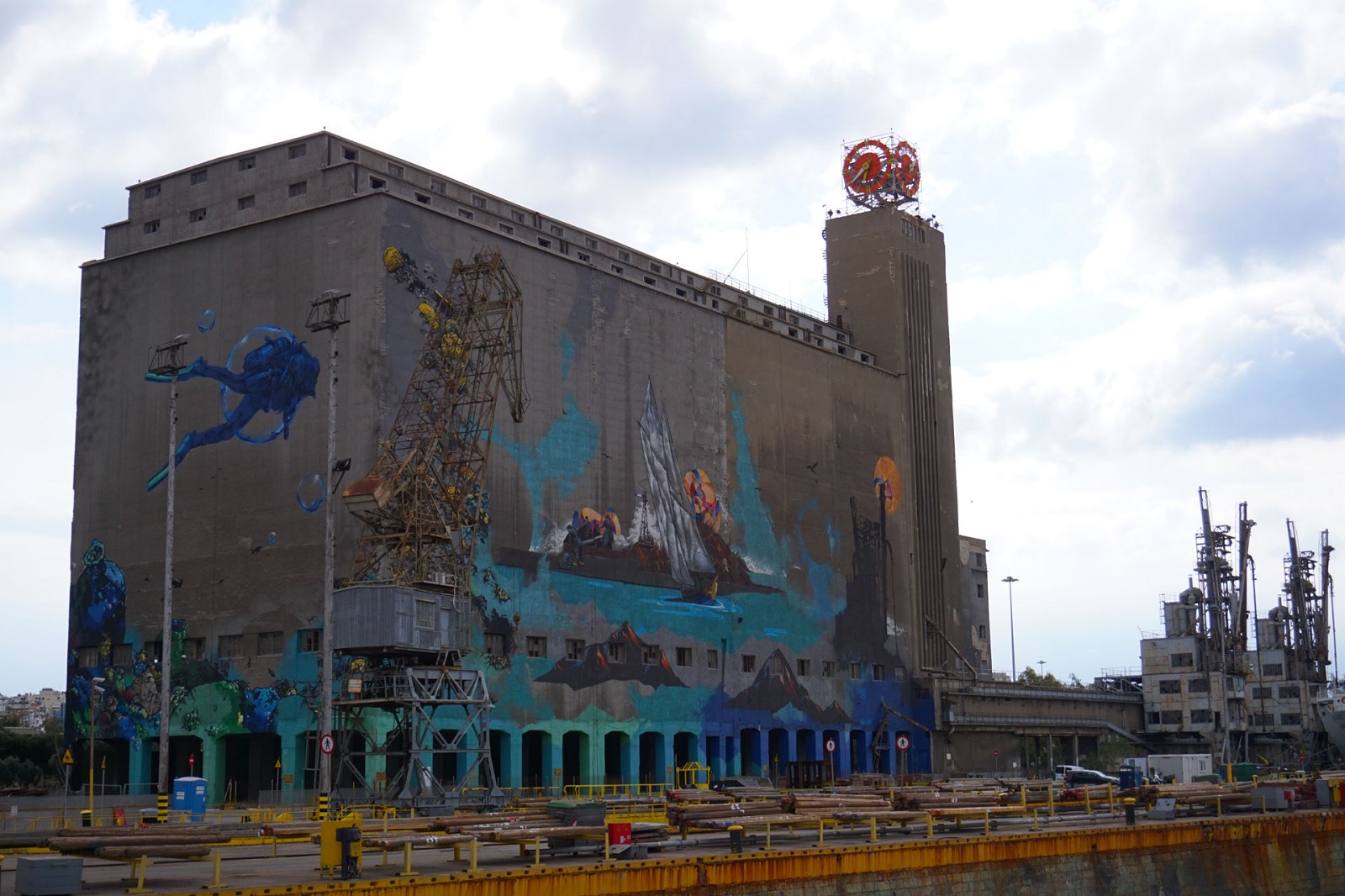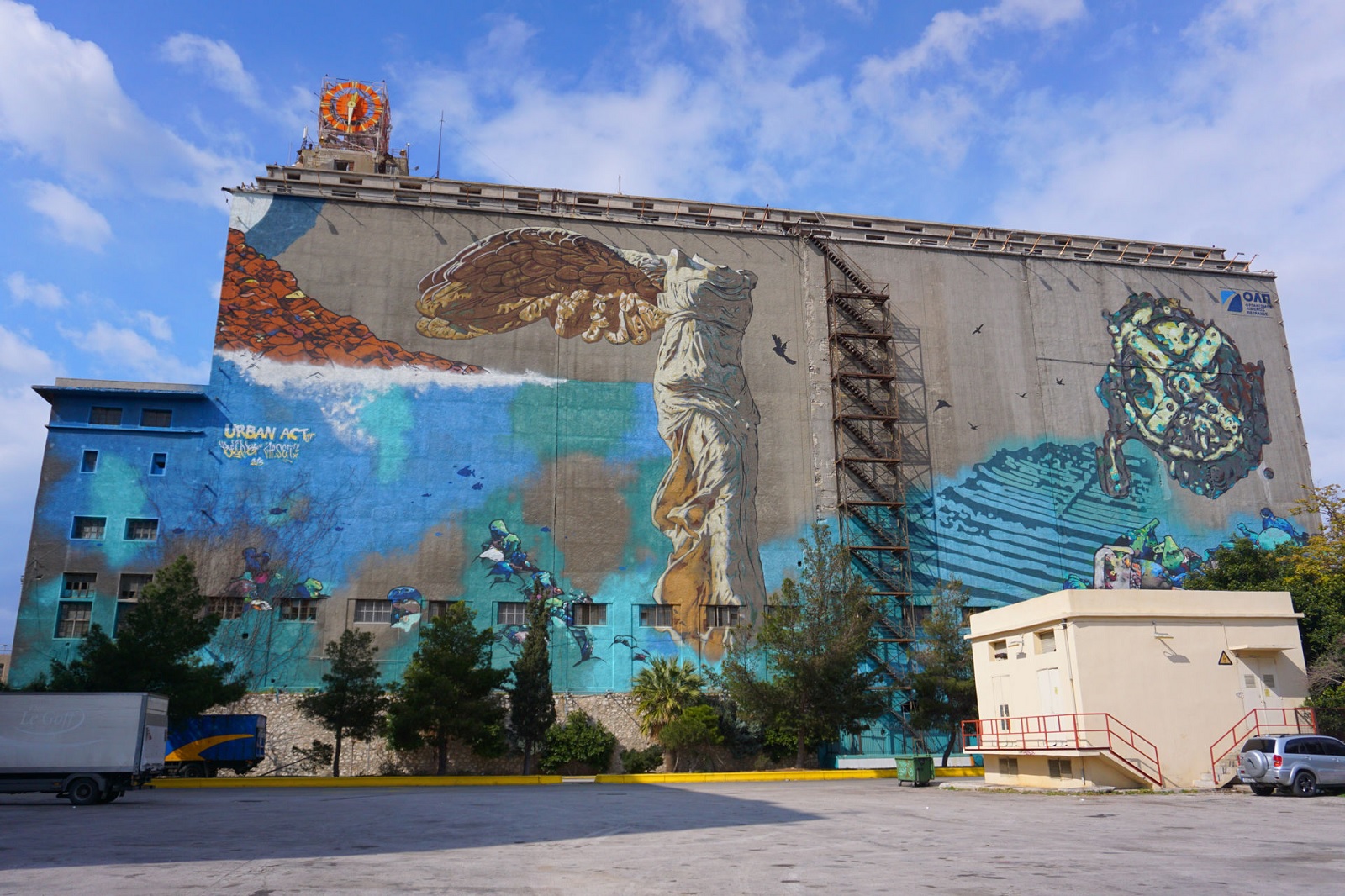 W dzielnicy Troumbas znajduje się jedno z największych i najbardziej imponujących dzieł Ino, „Lost”, które przedstawia dziewczynę zagubioną w wirze swoich myśli. Również w porcie, przy ulicy Akti Poseidonos, znajduje się inna, starsza praca Ino „We have the power” („Mamy moc”), przedstawiająca małego chłopca patrzącego na popiersie filozofa Demokryta. Na kultowym budynku SILO znajduje się również niesamowity mural z 2014 roku autorstwa zespołu Urban Act (w szczególności artystów ulicznych Same84 i Apset), którzy inspirowali się morską tradycją Grecji i mitami.