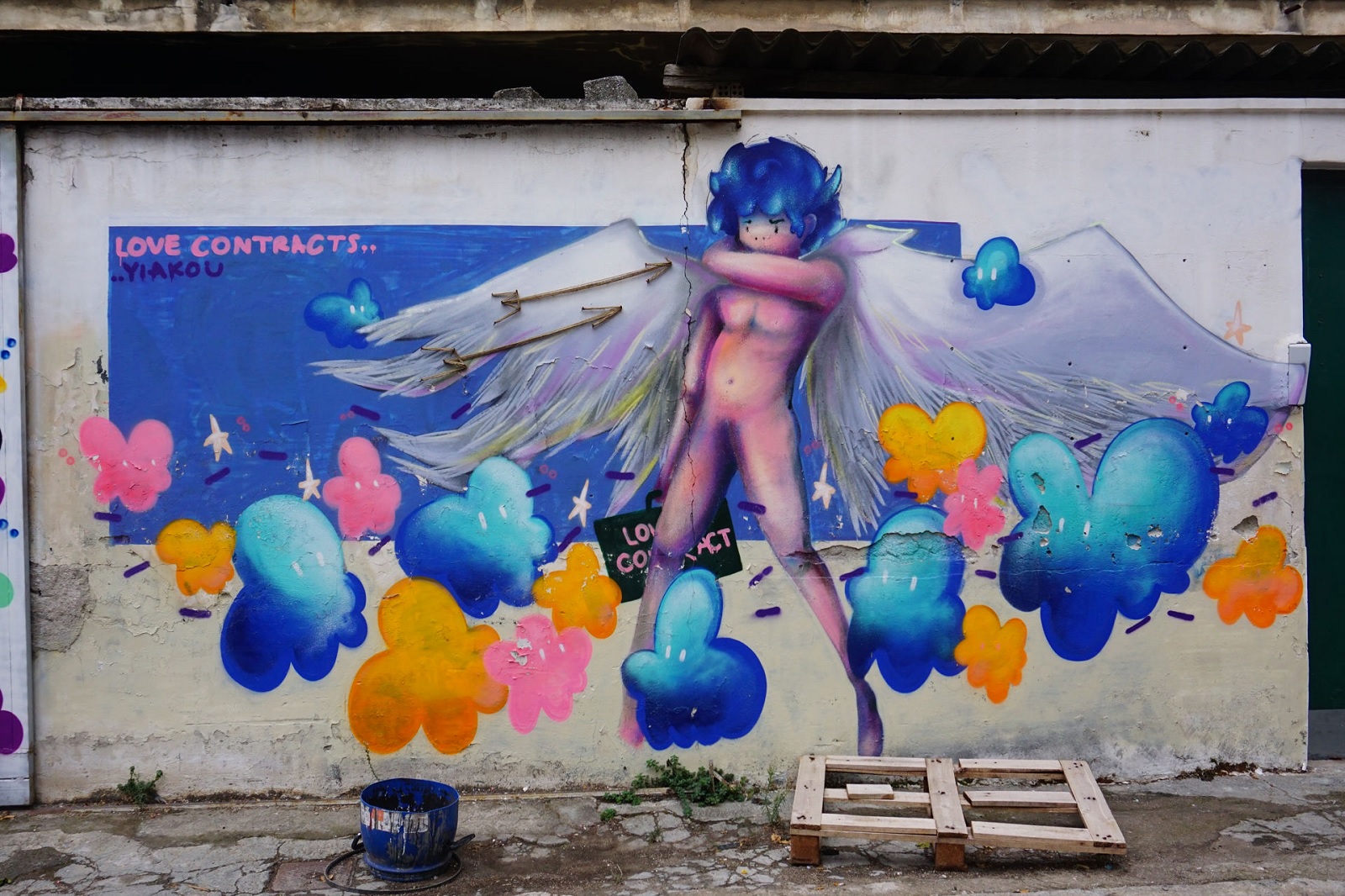 Na dziedzińcu jest mnóstwo dzieł sztuki, takich jak charakterystyczny mały jeleń, który jest znakiem rozpoznawczym Yiakou, pozaziemskie owady artysty Soul Thief i imponująca współpraca Wild Drawing i artysty tatuażu Billy82cmk.