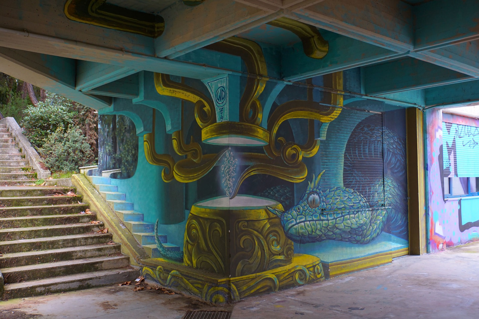 Na terenie kampusu znajdują się dwa niesamowite murale autorstwa Wild Drawing, a wśród nich wspaniały „Dom jadu”. Wśród innych najbardziej lubianych i popularnych prac jest również czarno-białe dzieło „Czułość” Nozo1 oraz eksperymentalne kompozycje graffiti i postacie artystów Taisha i Nique. Będąc w tej okolicy, szkoda byłoby nie wpaść do parku Goudi, oddalonego o zaledwie 5 minut jazdy samochodem. Park to idealne miejsce na relaks praktycznie w samym sercu miasta, gdzie można podziwiać kolejne dzieło Wild Drawing, „Four Elements”, inspirowane czterema żywiołami natury.