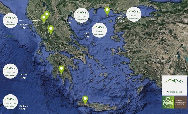 Nowe prawo, nazwane „Apatita Vouna” (Góry Nietknięte), dotyczy następujących gór: Lefka Ori (Kreta), Saos (Samotracja), Smolikas i Tymphi (Ioannina), Taygetus (Peloponez) i Hatzi (Trikala).