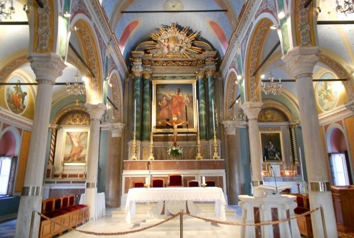 Katedra została zbudowana na wzgórzu około 1200 (XII w.) i była restaurowana wiele razy. Została zniszczona przez Turków w 1617 i została po raz ostatni odrestaurowana w 1834 do swego obecnego wyglądu. Jest katedrą wspólnoty katolickiej Síros od 1652 i mieści wiele cennych ikon takich jak jedna Świętego Jerzego, ikona Panagia tis Elpidas (Najświętsza Maryja Panna Nadziei) i portret biskupa Andreasa Kargasa, który został powieszony przez Turków.