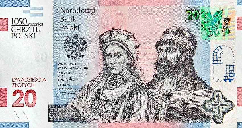 W 1050. rocznicę Chrztu Polski Narodowy Bank Polski wyemituje banknot kolekcjonerski o nominale 20 zł. W centralnej części strony przedniej przedstawiono stylizowane portrety Mieszka I i Dobrawy; na odwrocie przedstawiono wizerunek katedry gnieźnieńskiej.