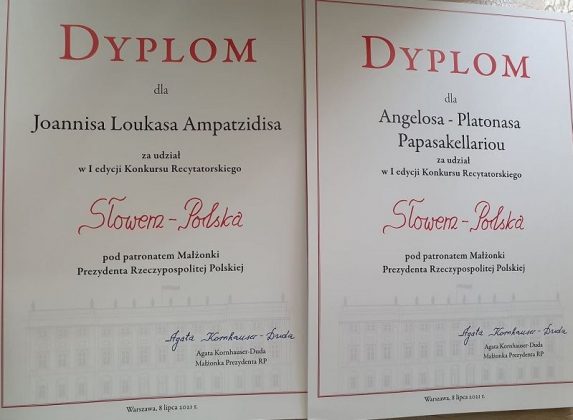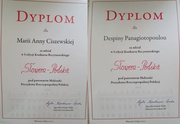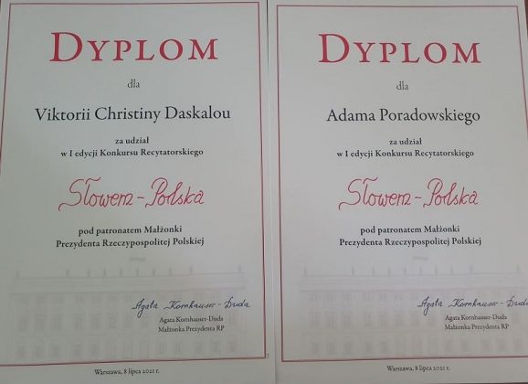 Uczniowie Szkoły Polskiej przy Ambasadzie Rzeczypospolitej Polskiej w Atenach z siedzibą w Salonikach wzięli czynny udział w Konkursie Recytatorskim „Słowem-Polska”, organizowanym przez Kancelarię Prezydenta RP pod patronatem Pierwszej Damy RP.