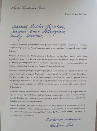 Sześciu uczniów Szkoły Polskiej przy Ambasadzie Rzeczypospolitej Polskiej w Atenach z siedzibą w Salonikach zostało nagrodzonych pamiątkowymi dyplomami z podpisem Pierwszej Damy RP.