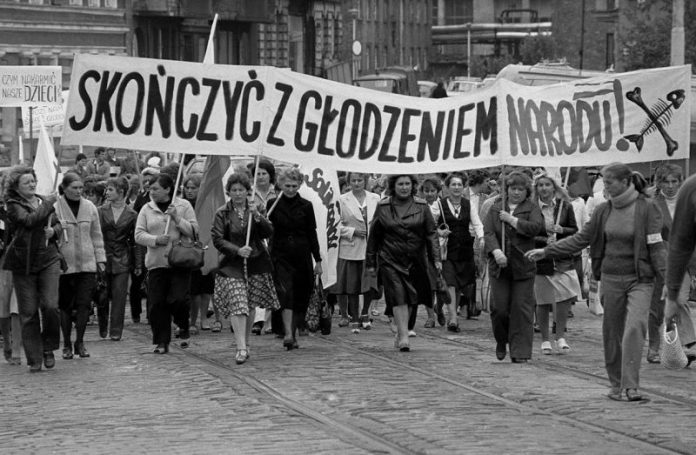 Nagle wszystko zniknęło z półek. Przed sklepami formowały się tasiemcowe kolejki. Oczywiście komuniści mieli wytłumaczenie – strajki. Władze „Solidarności” nie panowały nad sytuacją. Strajk gonił strajk. Kobiety organizowały marsze głodowe, niesiono transparenty „My chcemy chleba”.