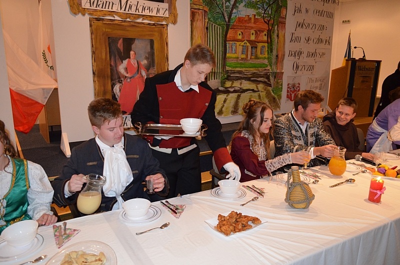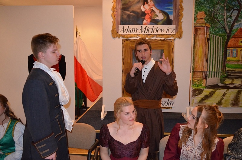 Dalszą część uroczystości wypełniły teatrzyki i recytacje najpiękniejszych utworów Adama Mickiewicza wykonanych w pięknym stylu przez dzieci z polskiej szkoły. Były piosenki oraz tańce, od eleganckiego poloneza poprzez krakowiaka do poleczki. Kolorowe stroje i pomysłowe układy choreograficzne spowodowały, że niejednemu zakręciła się łezka w oku.