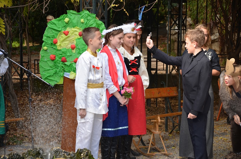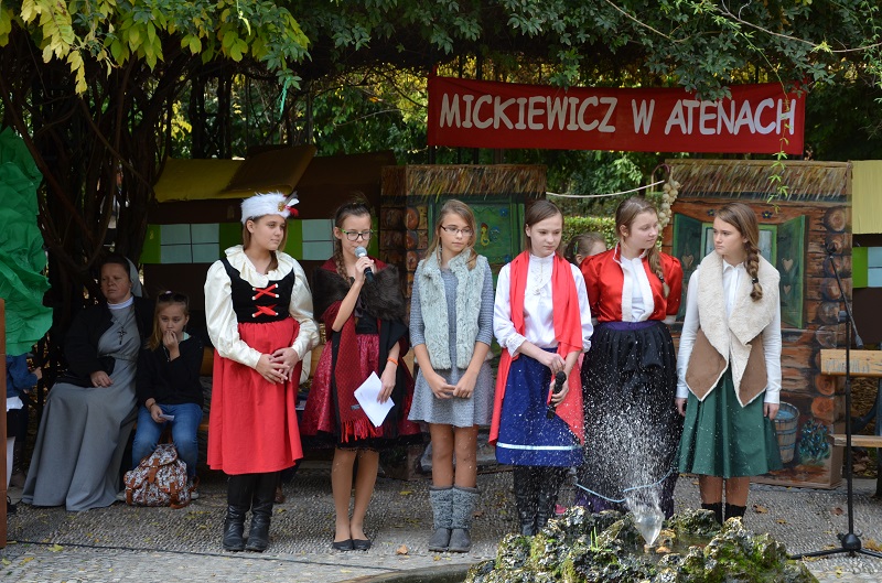 W tym dniu w malowniczej jesiennej atmosferze ateńskie Ogrody Królewskie zamieniły się w polskie symbole i barwy. Przez większość dnia po ścieżkach ogrodowych spacerowały dzieci i młodzież w strojach z utworów Adama Mickiewicza: „ „Romantyczności”, „Rybki”, „Pani Tardowskiej”, „Na Alpach w Splugen”, „Przyjaciele”, „Golono, strzyżono”, fragmentów „Dziadów”. Było miło i kolorowo. Wielu przechodniów z wielkim zainteresowaniem śledziło występy dzieci i podziwiało piękne kolorowe stroje.