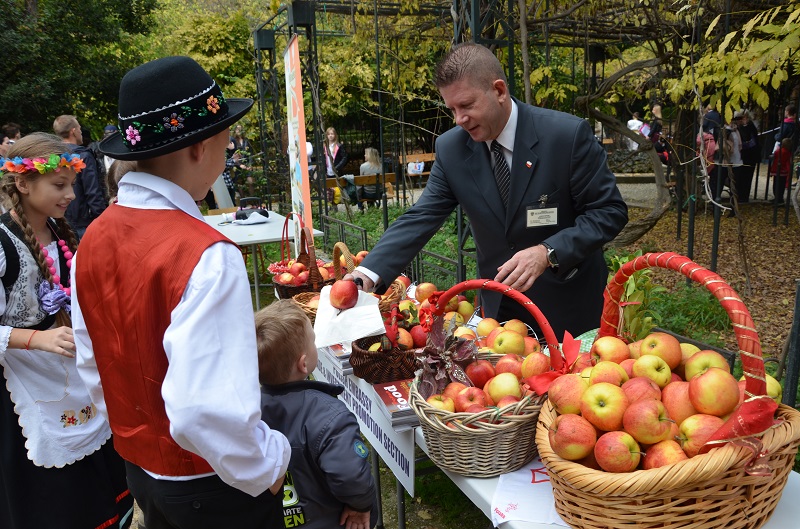 W trakcie uroczystości młodzież w strojach z „Pana Tadeusza” częstowała uczestników, widzów oraz przechodniów polskimi jabłkami przekazanymi przez Wydział Promocji Handlu i Inwestycji Ambasady RP w Atenach.