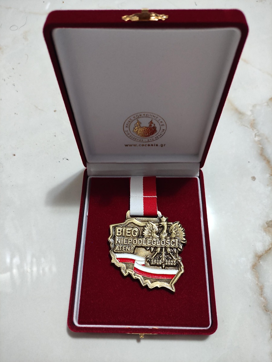 W dalszej części uroczystości Pani Marzena Mavridis – redaktor naczelna portalu POLONORAMA na ręce Pana Ambasadora złożyła pierwszy historyczny medal Biegu Niepodległości w Atenach, który uczestnicy biegu otrzymali na mecie w dniu 5 listopada.