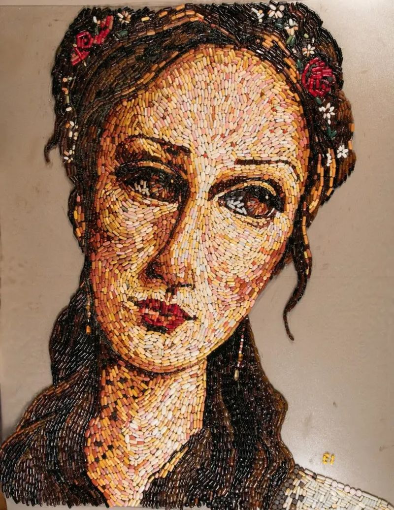 Oszałamiające innowacyjne mozaiki, wykorzystujące tylko przeterminowane pigułki, zostały stworzone niedawno przez – Eleni Ioannidou – specjalistę chorób zakaźnych i dyrektora Kliniki Patologii Szpitala Rethymno na greckiej wyspie Krecie. Warto zaznaczyć, że mozaika to wzór lub obraz złożony z małych, regularnych lub nieregularnych kawałków kolorowego kamienia, szkła lub ceramiki, które pokrywają powierzchnię. Mozaiki, które są często używane jako dekoracja podłóg i ścian, były szczególnie popularne w świecie starożytnego Rzymu. Mają długą historię, która rozpoczęła się w Mezopotamii w trzecim tysiącleciu pne. Sztuka mozaiki kwitła również w Bizancjum, od VI do XV wieku; tradycję tę przejęło Normańskie Królestwo Sycylii w XII wieku.