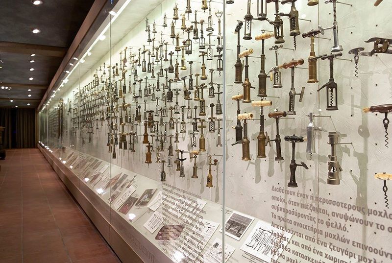 W „Muzeum wina”, eksponaty zaprezentowane są w sekcjach tematycznych: „Znaczenia wina w starożytnej Grecji”, „Szklane naczynia”,” Korkociągi – mechaniczne i nie mechaniczne”, „Narzędzia związane z uprawą winorośli” „Winifikacje” „Rodzaje beczek”. Ekspozycji towarzyszą przepiękne zdjęcia i interesujące opisy.