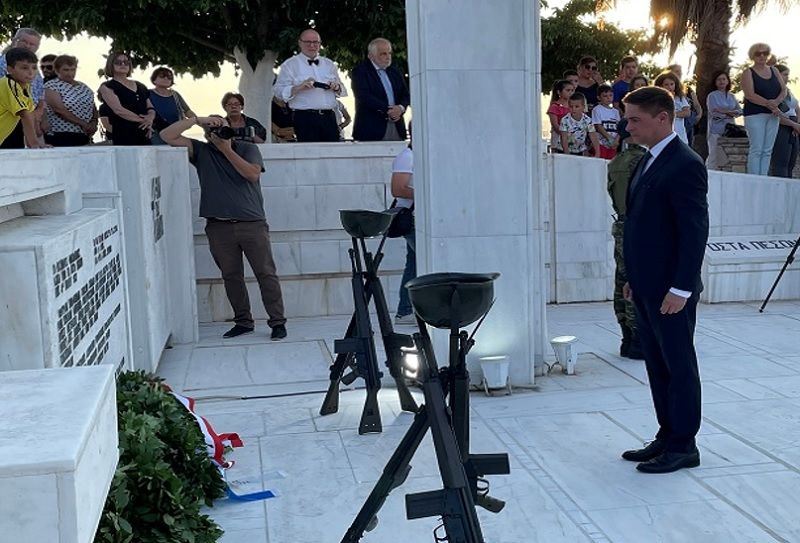 Ambasador wspomniał również bohaterski oddział Polaków – „wspaniałą dwunastkę” pod wodzą kapitana Franciszka Mierzejwskiego, którzy polegli w bitwie pod Petą i „nasączyli tę ziemię swoją krwią wraz z innymi zagranicznymi i greckimi bojownikami”.