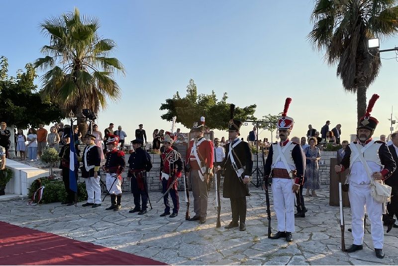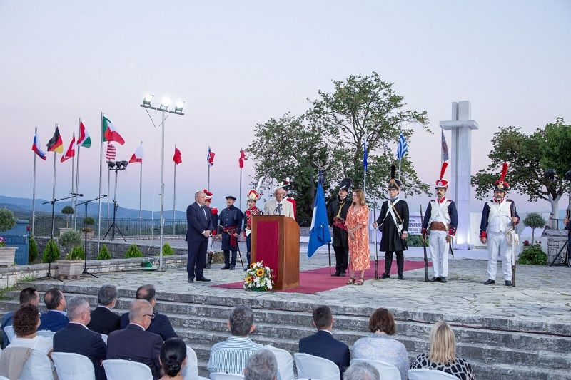 Lompart oddał hołd poległym Grekom, oraz przypomniał symboliczny charakter tego niepodległościowego zrywu dla całej Europy – „Rok temu wspomniałem, że grecka rewolucja była iskrą, która rozpaliła pragnienie narodów do wolności, a sukces Greków – walka biblijnego Dawida z Goliatem – dała nadzieję innym narodom Europy, w tym Polakom, którzy w tym czasie również byli pod obcym panowaniem. Oddajemy dziś cześć bohaterom, odważnym mężczyznom i kobietom, którzy zdecydowali się poświęcić swoje życie dla najcenniejszej rzeczy w życiu narodów – wolności. Wywodzącej się ze starożytnej greckiej kultury i tradycji”. „Rzeczywiście, na polu bitwy pod Petą, po raz pierwszy po wojnach napoleońskich, wszystkie narody Europy, zainspirowane grecką cywilizacją, zjednoczyły się pod jednym sztandarem i walczyły przeciwko barbarzyńcom” – dodał.