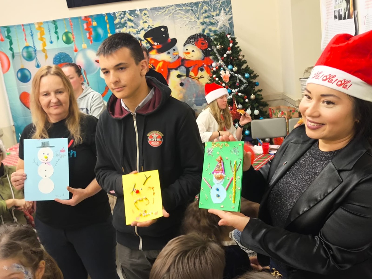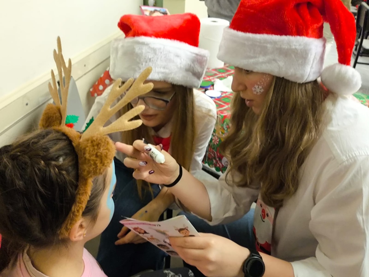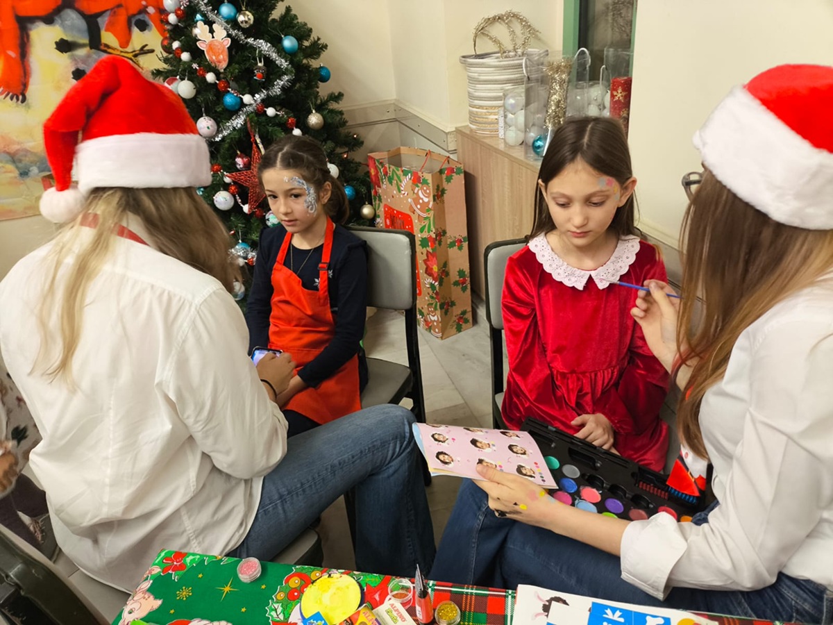 Wyjątkowym i niezwykle budującym elementem wydarzenia była obecność młodzieży, która aktywnie włączyła się w przygotowanie i prowadzenie atrakcji dla dzieci. Z ogromnym zaangażowaniem opiekowała się młodszymi rodakami, tworząc atmosferę bliskości i zaufania – jak między siostrą a bratem. Młodzi wolontariusze malowali dzieciom twarze, zamieniając je w renifery, aniołki, bałwanki i bajkowe postacie, wciągając najmłodszych w świat świątecznej zabawy. Śmiech, kolory i radosne okrzyki towarzyszyły każdemu malunkowi, a dzieci z dumą prezentowały swoje „świąteczne twarze”, dodając spotkaniu ciepła i autentyczności.