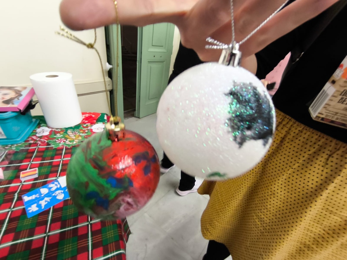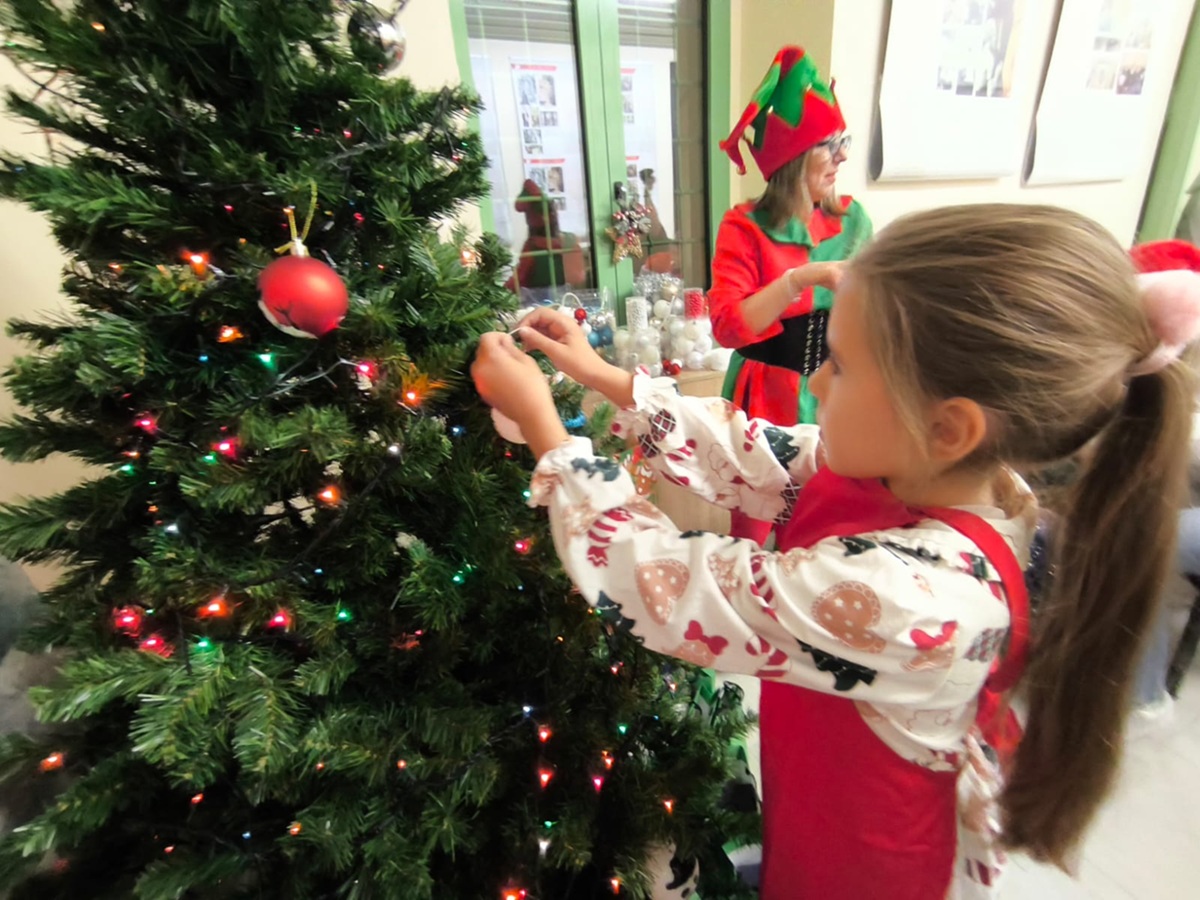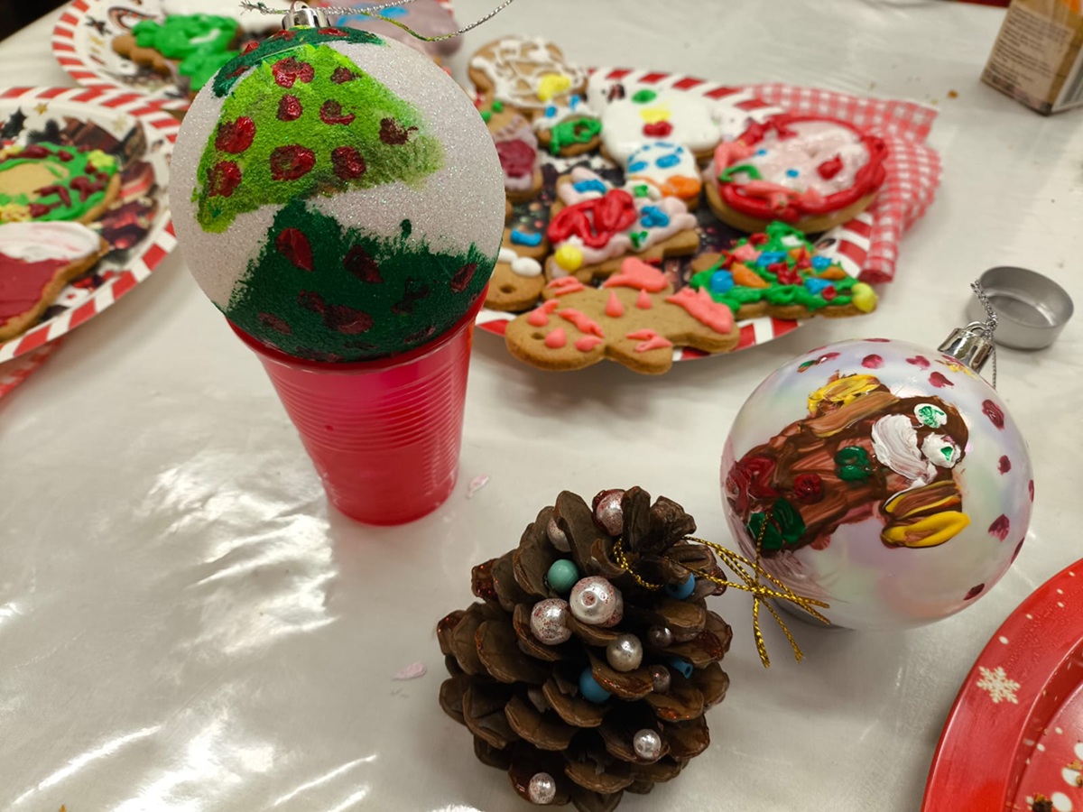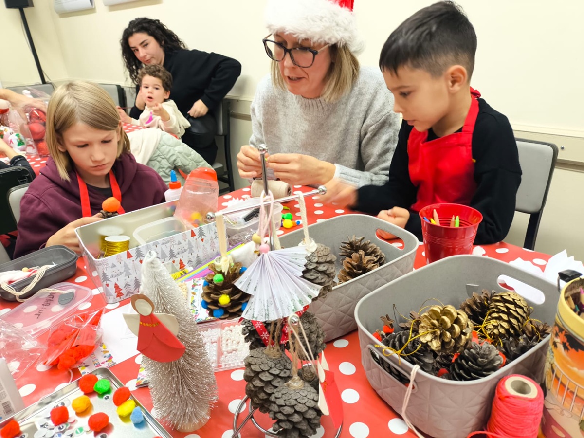 Równolegle odbywały się warsztaty tworzenia ozdób choinkowych oraz warsztaty plastyczne, które rozwijały wyobraźnię i zdolności manualne. Mali artyści malowali, wycinali, kleili i dekorowali na dziesiątki sposobów – od tradycyjnych bombek po autorskie prace inspirowane świątecznymi marzeniami. Każda ozdoba była wyjątkowa, a dumne spojrzenia dzieci prezentujących swoje dzieła rodzicom najlepiej świadczyły o radości tworzenia.