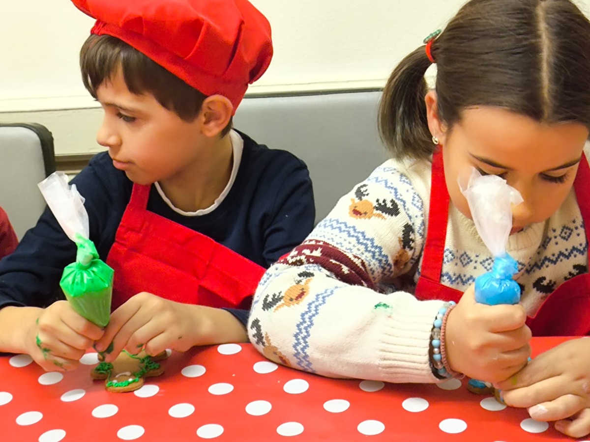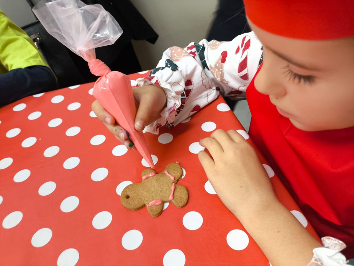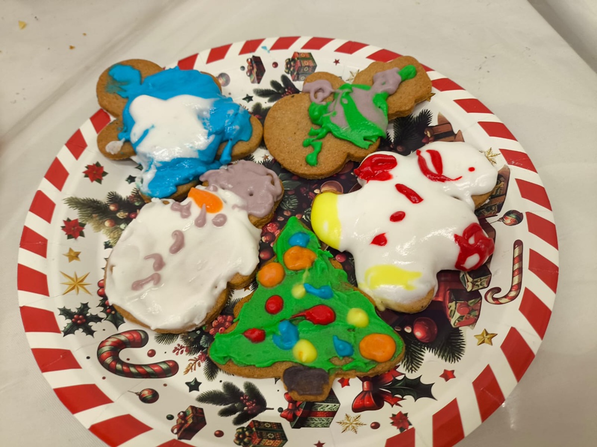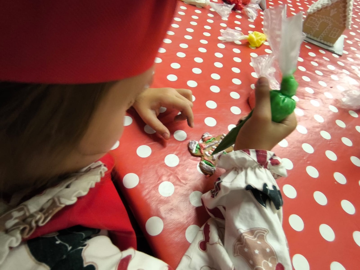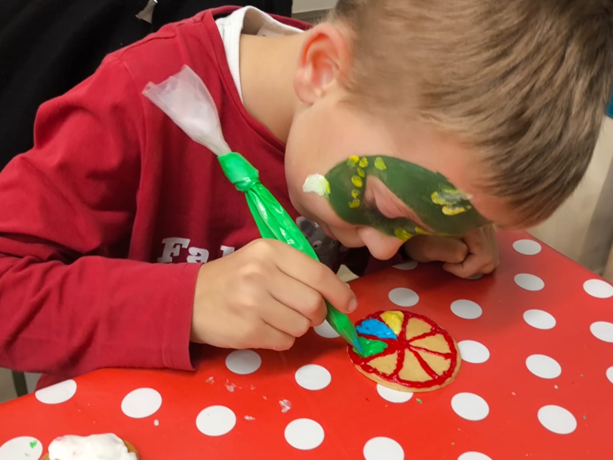 Wśród przygotowanych atrakcji największym zainteresowaniem cieszyły się warsztaty piernikowe. Najmłodsi – samodzielnie lub przy wsparciu dorosłych – dekorowali świąteczne wypieki. Na stołach pojawiły się polukrowane bałwanki, choinki, gwiazdki i ludziki, a każde dzieło było niepowtarzalne, pełne wyobraźni i emocji. Kolorowe lukry i posypki, a przede wszystkim radosne uśmiechy uczestników, szybko wypełniły salę świątecznym gwarem.