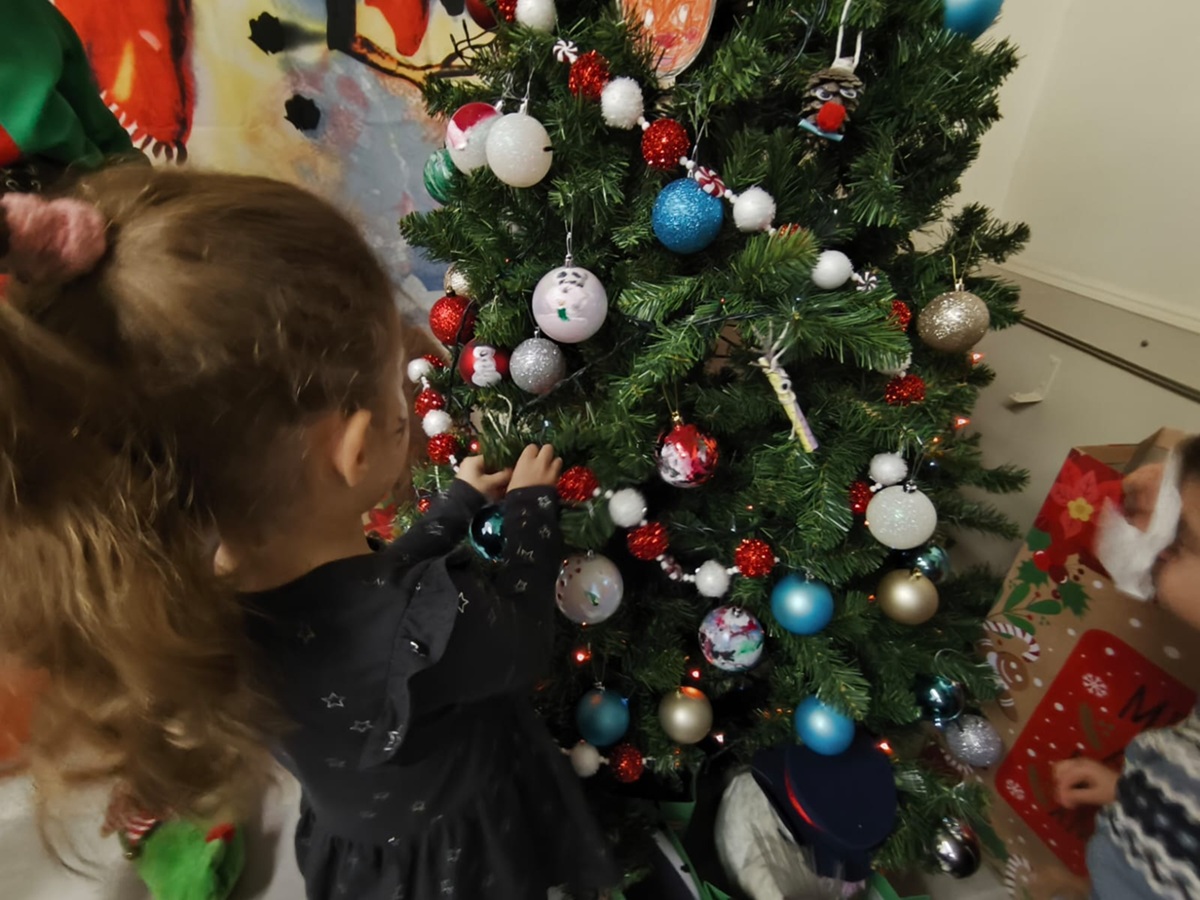 Całości dopełniały polskie kolędy i piosenki świąteczne, które nadawały wydarzeniu wyjątkowy klimat. Nawet dzieci, które nie słyszą ich na co dzień, z entuzjazmem wsłuchiwały się w melodie, próbując podążać za rytmem, refrenami i znanymi słowami. Szczególną atmosferę stworzyło wspólne śpiewanie kolęd przy gitarze, które łączyło dzieci i rodziców, wprowadzając wszystkich w radosny, świąteczny nastrój.