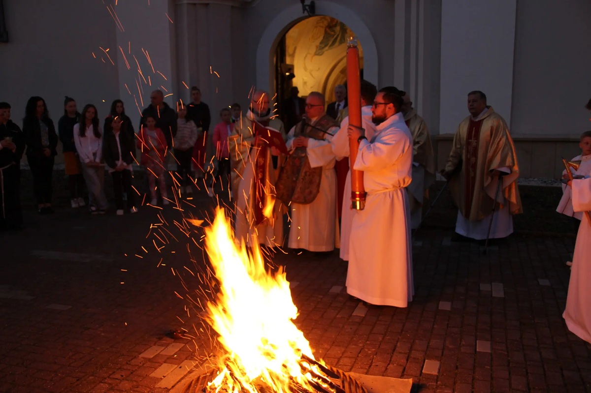 W Wielką Sobotę po zmroku odbywa się w kościołach liturgia Wigilii Paschalnej, podczas której poświęcona zostaje woda i ogień. Uczestnicy liturgii odnawiają także przyrzeczenia chrzcielne. W wielu parafiach dzieci przyjmują sakrament chrztu świętego. To jedna z najbardziej uroczystych liturgii w roku. Podczas liturgii Wigilii Paschalnej kluczowymi momentami są: pojawienie się ognia symbolizującego Chrystusa, który jest światłem świata; paschał, czyli świeca zapalana z ognia, a jej płomień jest przenoszony przez wiernych, symbolizując zmartwychwstanie; oraz liturgia Słowa, w trakcie której czytane są fragmenty Pisma Świętego, głównie dotyczące zmartwychwstania. W niektórych miastach, takich jak Kraków czy Wrocław, organizowane są teatralne inscenizacje wydarzeń związanych z męką i zmartwychwstaniem Chrystusa, angażujące lokalną społeczność i tworzące niepowtarzalną atmosferę modlitwy i refleksji, przybierające formę melodramatycznych przedstawień. To zakończenie Triduum Paschalnego. Zgodnie z żydowską tradycją o zmroku nastaje nowy dzień, więc rozpoczyna się już radość ze Zmartwychwstania Jezusa.
