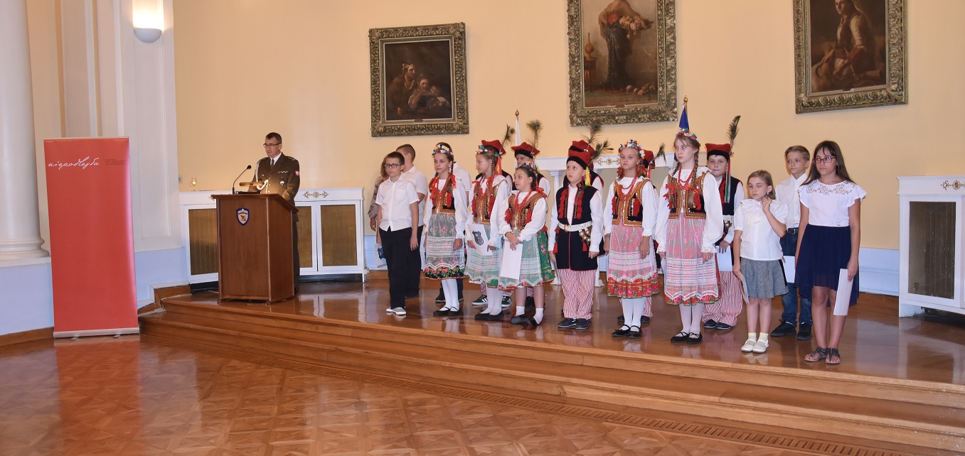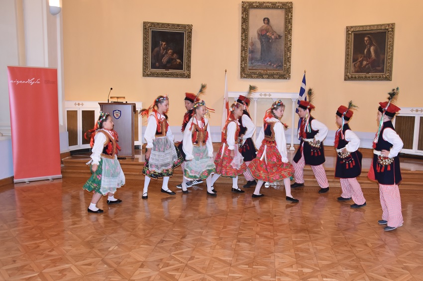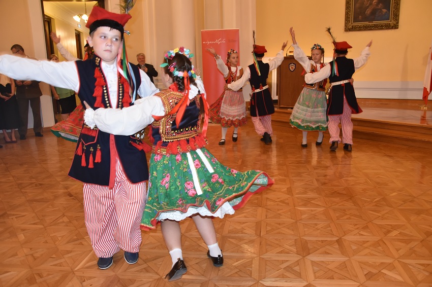 Część oficjalna zawierała również występ polskich dzieci, ubranych w narodowe stroje ludowe. W programie artystycznym dzieci zaprezentowały tańce m.in. „Krakowiaka” i pieśni patriotyczne, co było doskonałą okazją do przypomnienia naszych tradycji narodowych.