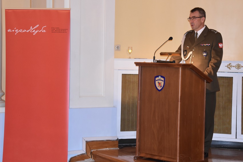 Kiedy każdy zajął swoje miejsce, rozpoczęła się główna ceremonia. Na początku uroczystości zabrzmiały hymny obydwu krajów – polski oraz grecki, a tuż po tym głos zabrał płk Zbigniew Rybka. Jego przemowa dotyczyła setnej rocznicy odzyskania niepodległości przez Polskę. Ujął w niej także fakt, że Grecja jako jeden z pierwszych krajów uznała Polskę za niepodległe państwo. Poniekąd zwrócił uwagę na przypadającą w 2019 roku setną rocznicę nawiązania stosunków dyplomatycznych pomiędzy Polską i Grecją.