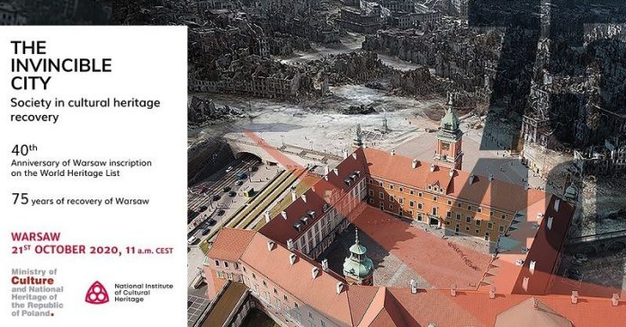 „Międzynarodowe webinarium +The invincible city. Society in cultural heritage recovery+ z okazji 40-lecia wpisu „Historycznego Centrum Warszawy” na Listę Światowego Dziedzictwa UNESCO oraz 75-lecia jego odbudowy odbędzie się w środę, 21 października” – czytamy w informacji przesłanej przez Ministerstwo Kultury i Dziedzictwa Narodowego (MKiDN).