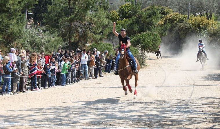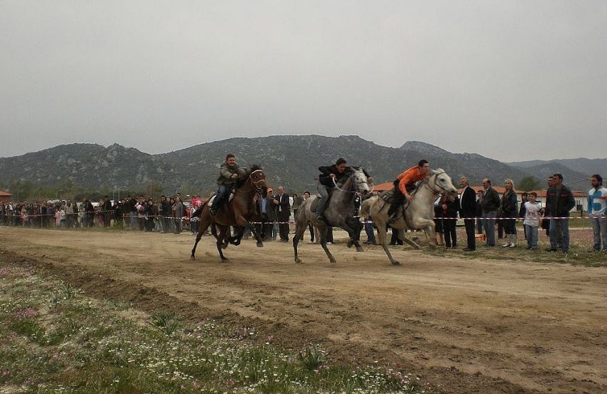 * Podobny wyścig odbywa się w Limnos. Są one powiązane z zaborem tureckim. Podobno młodzi ze wsi Kaliopii ukradli Turkom konie. Turcy, chcąc je odzyskać, zaproponowali wyścigi konne właśnie w dzień św. Jerzego. Ten, kto wygrywa zatrzymuje konie. Na pamiątkę tych wydarzeń, przez kolejne lata urządzane były wyścigi pomiędzy młodymi mężczyznami ze wsi Kaliopii, a Turkami. Tylko w czasie wojny, w latach 40-tych, wyścigi nie odbywały się przez 2 lata z powodu braku młodzieńców, którzy mogli brać udział w wyścigach. Po zakończeniu wyścigów wszyscy udają się do kościoła św. Jerzego, który znajduje się w centrum wsi Kaliopii: jeźdźcy wjeżdżają konno na plac kościelny. Ma tu miejsce dekoracja tak jeźdźców i koni, czerwonymi chustami.