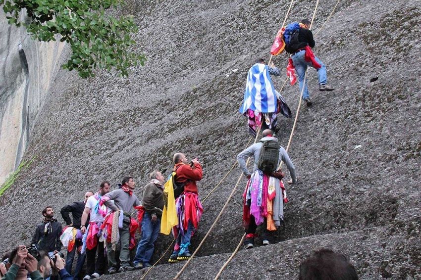 * Kolorowe chusty, wspinaczka i taniec na skałach jednocześnie, to charakterystyczne elementy wydarzenia, które odbywa się w starym zrujnowanym klasztorze poświęconym świętemu Jerzemu, który został zbudowany w jaskini około 40 metrów nad ziemią po północnej stronie skały Meteory.